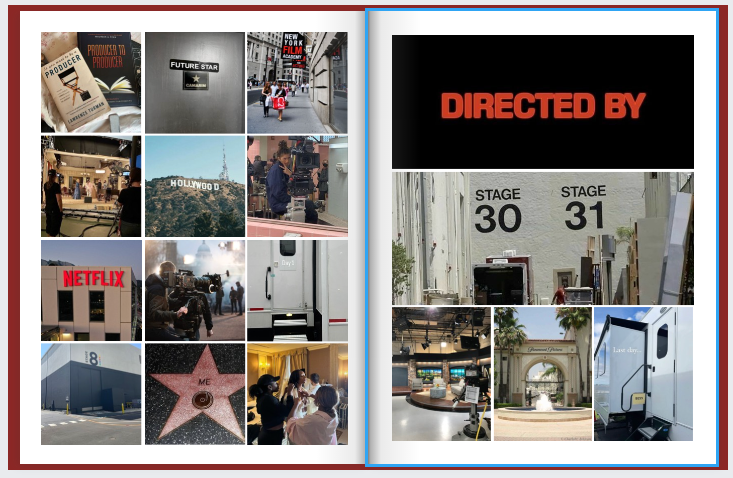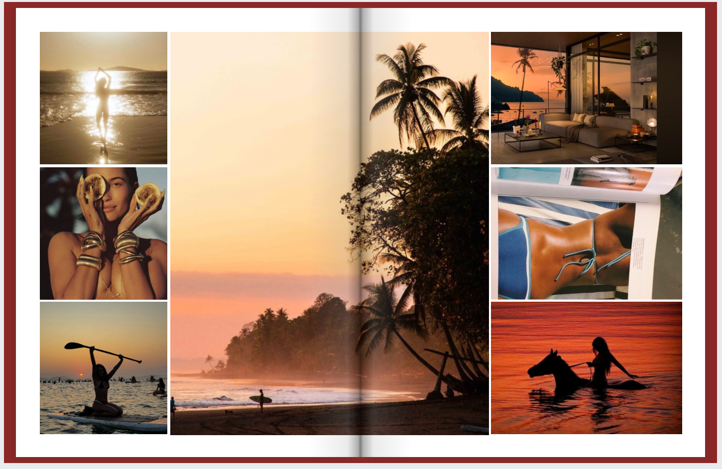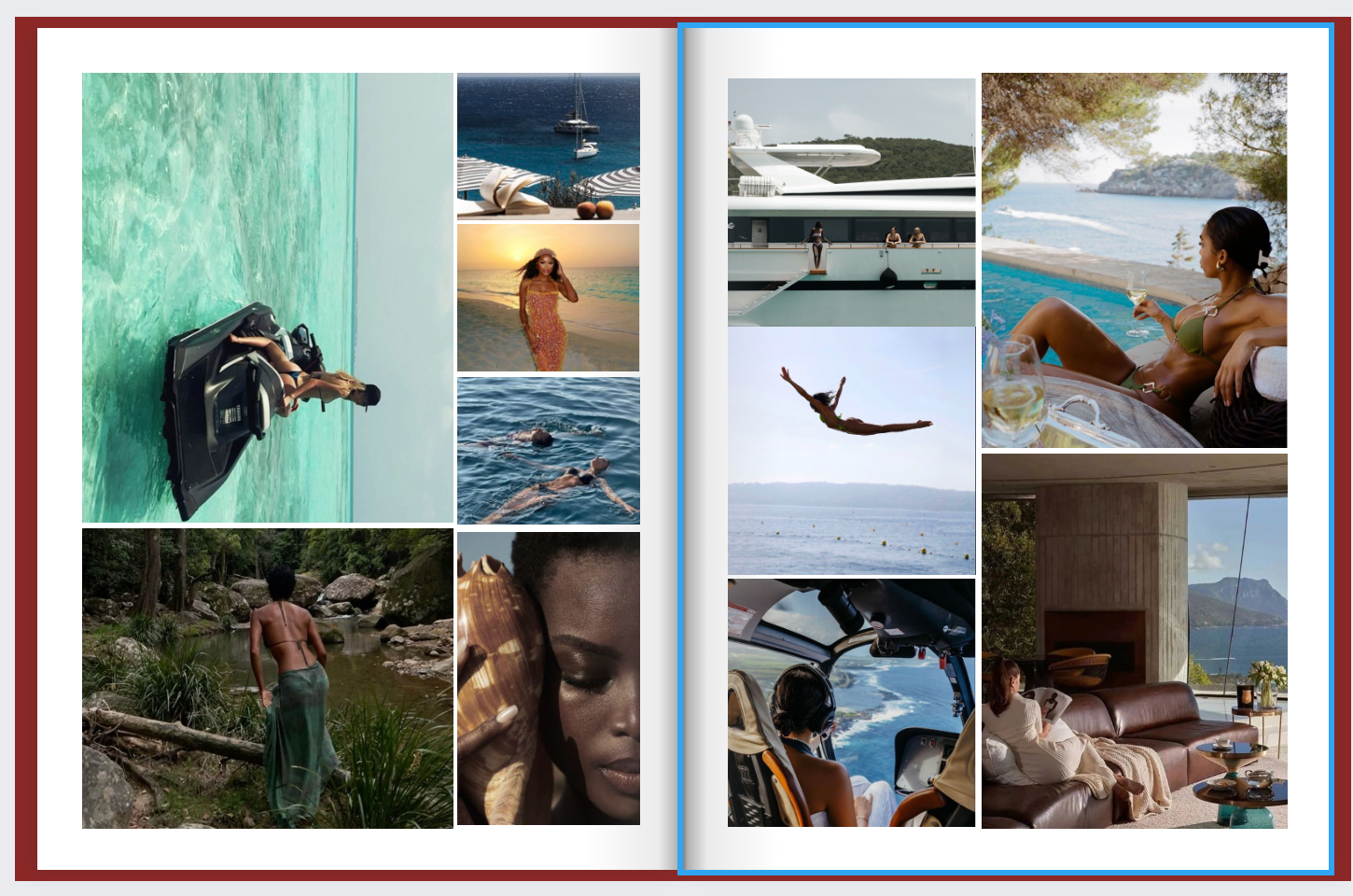 Upload your images from your Pinterest board and layer them on each section. You can organise them in a creative and aesthetic way that tells a story of the life you are manifesting.